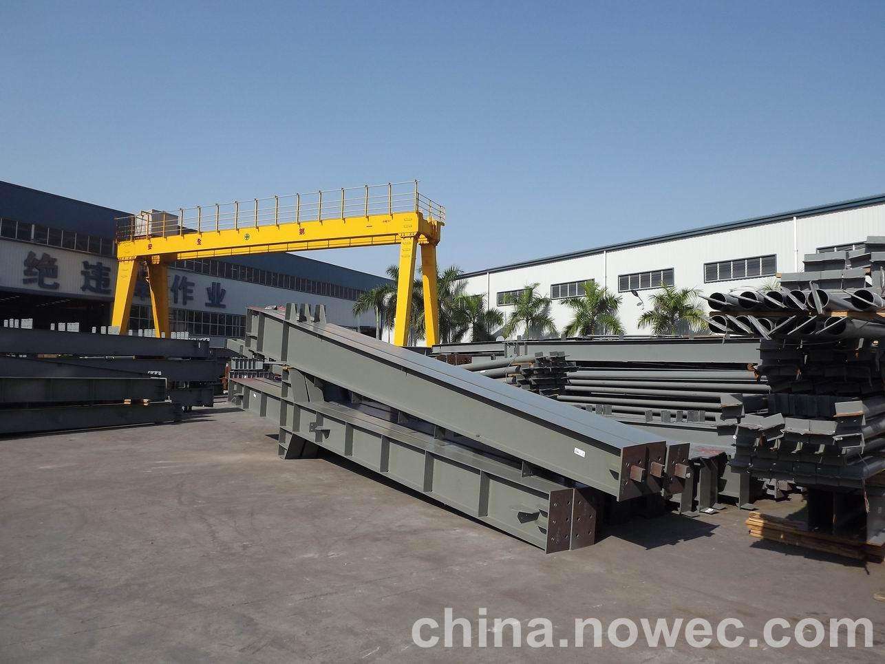 条状单元一般沿长跨方向分割,其宽度约为1~3个网格,其长度为l2或l2/2(l2为短跨跨距)。块状单元一般沿姜堰网架平面纵横向分割成矩形或正方形单元。每个单元的重量以现有起重机能胜任为准。条(块)与条(块)之间可以直接拼装,也可空一网格在高空拼装。由于条(块)状单元是在地面拼装,因而高空作业量较高空散装法大为减少,拼装支架也减少很多,又能充分利用现有起重设备,故较经济。这种安装方法适用于分割后网架的钢度和受力状况改变较小的各类中小型网架,如两向正交正放四角锥、正放抽空四角锥等网架。